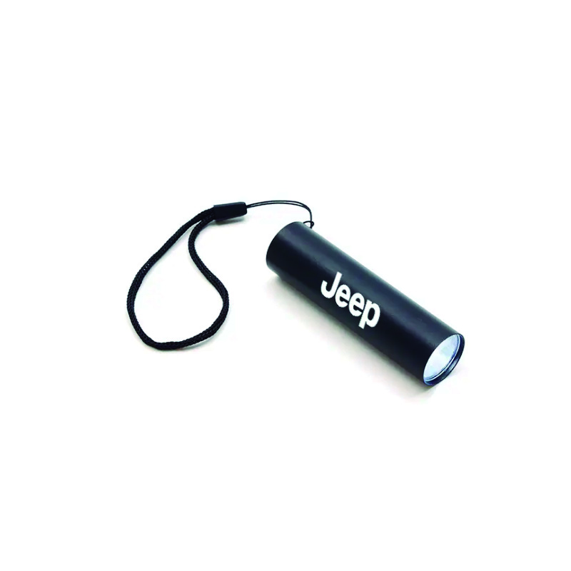 Linterna con batería recargable y banda de agarre. Fabricada a base de aluminio, dándole un peso liviano y duradero. Ideal para tener a mano.